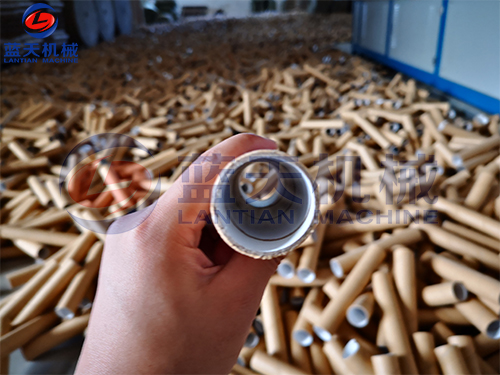 5、紙管干燥:將粗切成段的紙管段放入紙管烘干機(jī)內(nèi),打開烘干機(jī)電源,關(guān)上烘干機(jī)門,設(shè)置好烘干參數(shù)后啟動烘干機(jī),直到紙管的含水量低于12%。